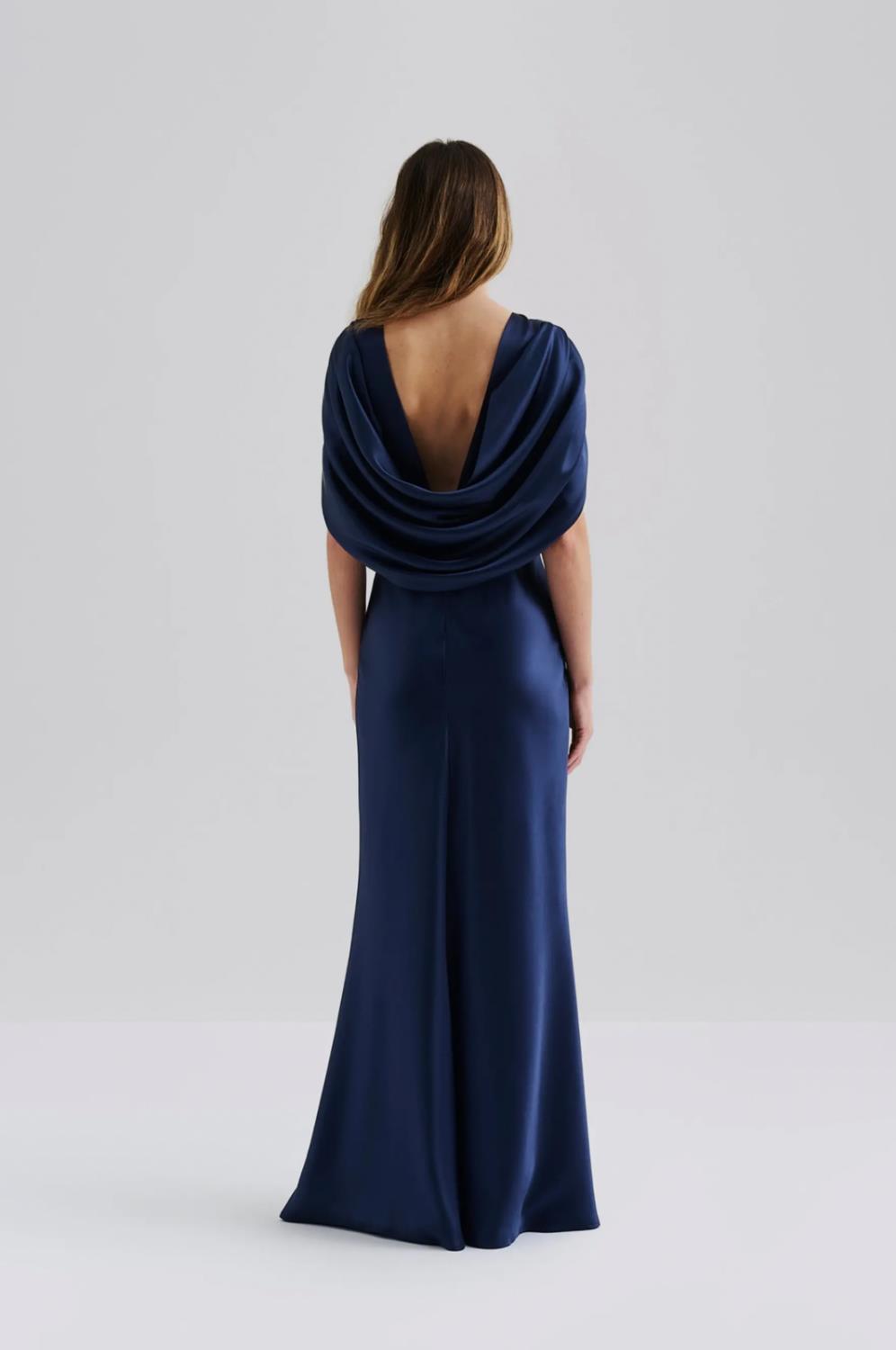 Malina Louise draped back maxi dress blå
